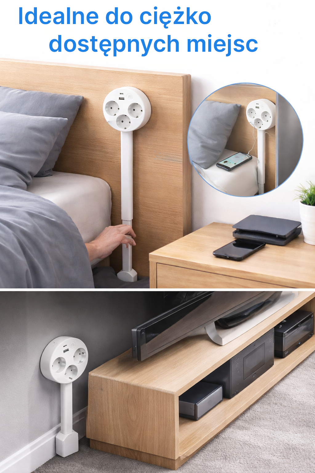 Idealny za łóżkiem, przy biurku i szafce RTV – tam, gdzie zwykłe adaptery nie dają rady.